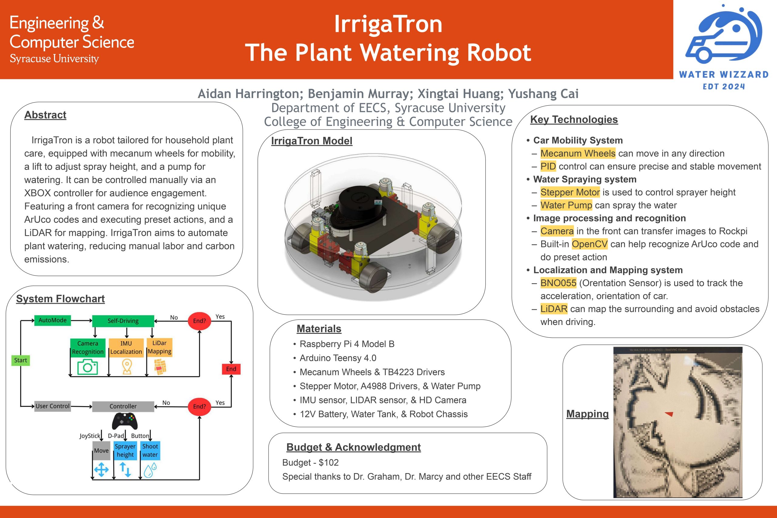 A household plant-watering robot; I owned low-level motion control and the watering mechanism on Teensy 4.0.