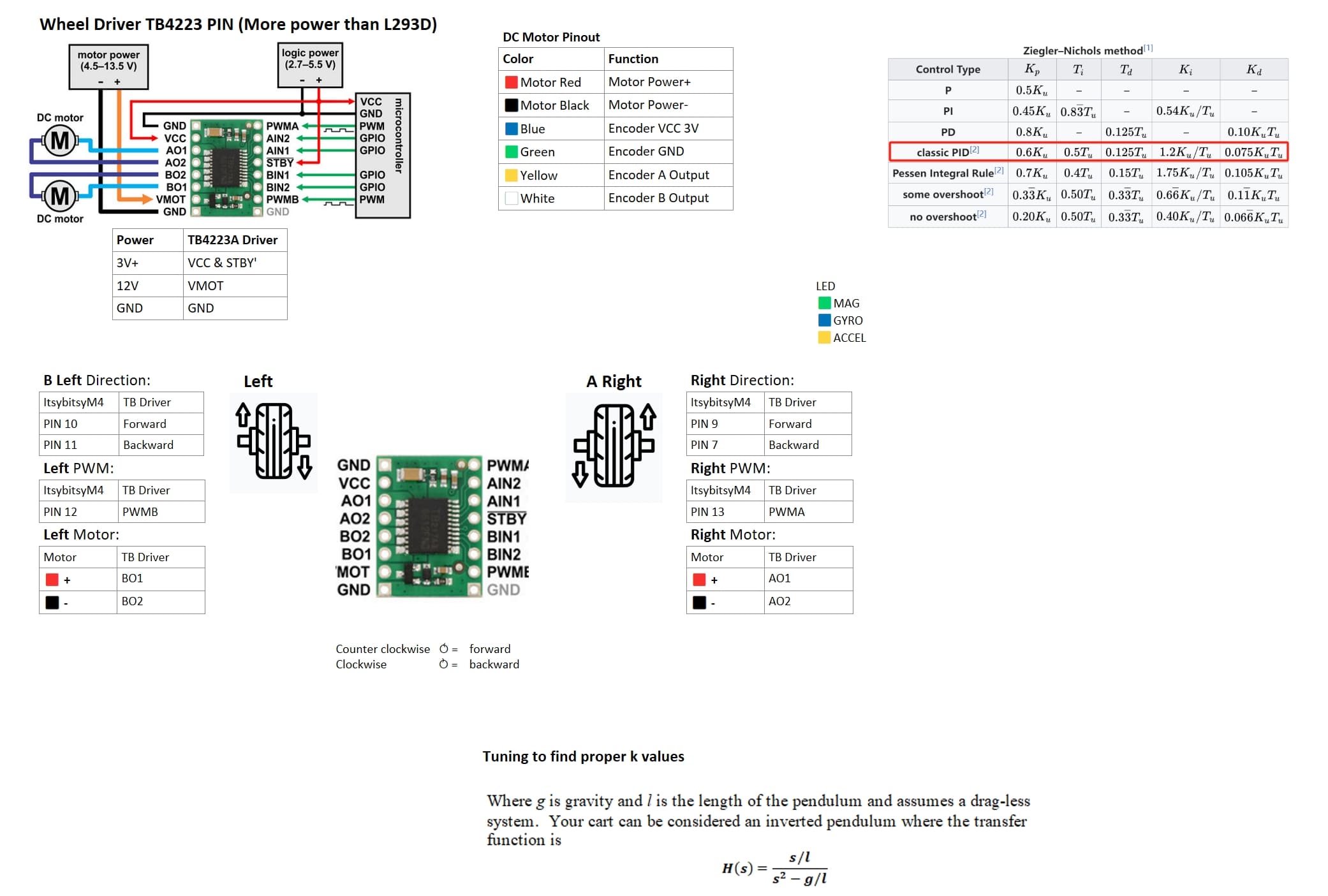 • Drive the wheels through the TB4223 H-bridge so motion counters the tilt and brings gravity-X → 0.